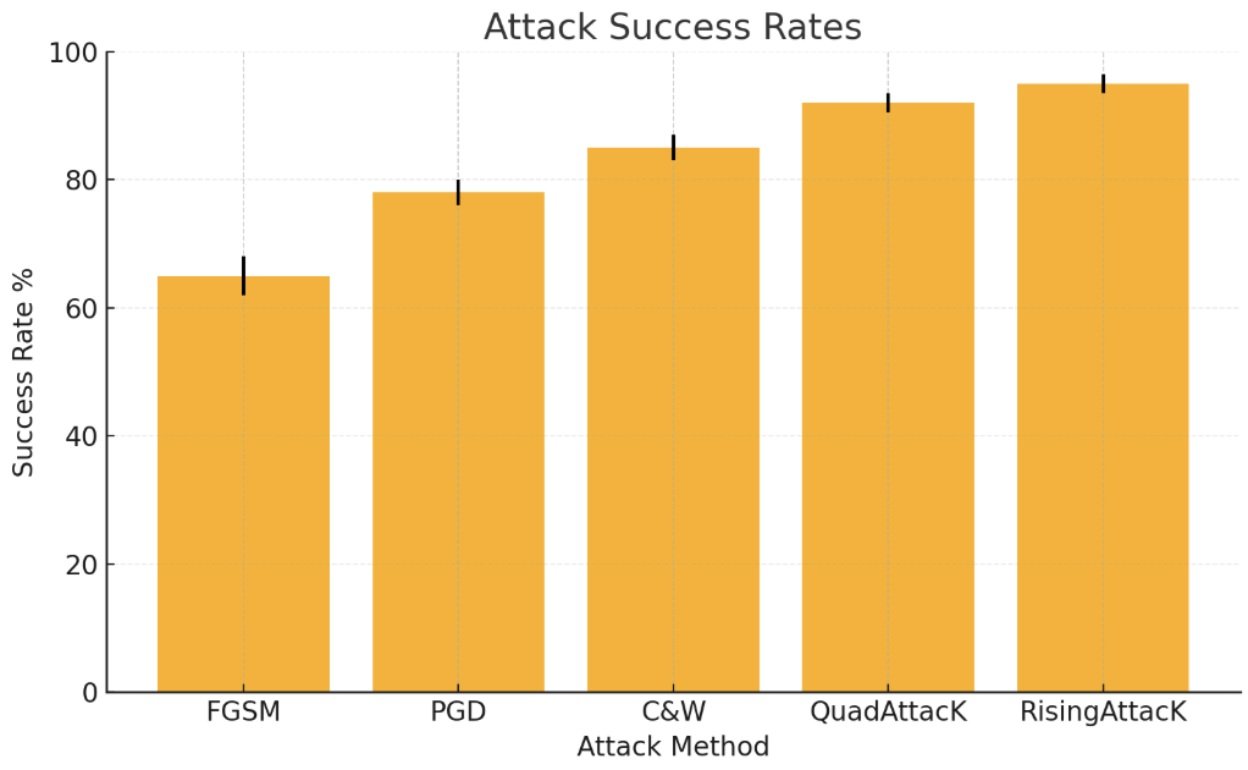 Comparison of Adversarial Attack Success Rates – RisingAttack demonstrates superior performance